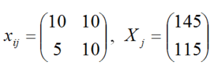Найти конечный продукт каждой отрасли, чистую продукцию каждой отрасли, матрицу коэффициентов прямых затрат. Какой будет валовой  продукт  каждой  отрасли,  если  конечный  продукт  сельского хозяйства  необходимо  увеличить  на 40 %,  а  машиностроения уменьшить на 20 %. Матрица межотраслевых материальных связей xij и матрица валового выпуска Xj приведены в таблице.