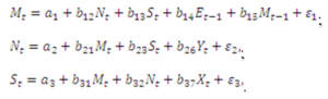 - Проверьте с помощью порядкового условия идентификации, идентифицирована ли данная модель.