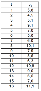 Имеются условные данные об объеме потребления электроэнергии (yt) жителями региона за 16 кварталов.