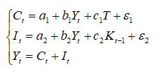 Где С – потребление, Y – доход, I – инвестиции, T – налоги, K – запас капитала, t – текущий период, t-1 – предыдущий период.
