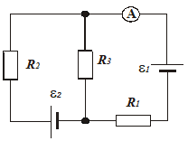 1. Какую силу тока показывает миллиамперметр мА в схеме на рис., если ε1 = 2 В, ε2 = 1 В, R1 = 103 Oм, R2 = 500 Ом, R3 = 200 Ом и сопротивление амперметра равно RА = 200 Ом? Внутренним сопротивлением элементов пренебречь.