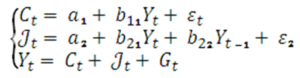 где  C – расходы на потребление; Y – доход; I — инвестиция; G – государственные расходы; t – текущий период; t-1 – предыдущий период/