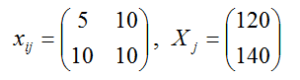 Матрица межотраслевых материальных связей xij и матрица валового выпуска Xj приведены в таблице:
