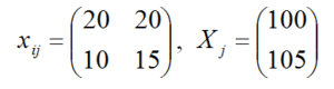 Матрица межотраслевых материальных связей xij и матрица валового выпуска Xj приведены в таблице: