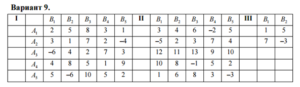ЗАДАЧА III. Дана платёжная матрица 2×2 для двух банков. Определить оптимальные смешанные стратегии банков A и B , определив цену игры ν и соответствующие вероятности оптимальных стратегий. Проиллюстрировать решение для каждого из игроков