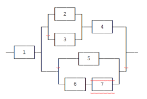 3. Найти вероятность надежной работы функциональной цепи, состоящей из независимо работающих элементов, если вероятность выхода из строя каждого элемента одинакова и равна q = 0,3.