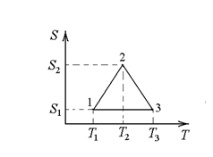 3.3. Тепловая машина совершает циклический процесс 1–3–2–1, изображенный на графике в координатах S – T. Найти коэффициент полезного действия тепловой машины.
