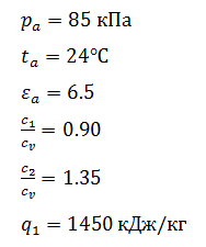 А) определить значения параметров во всех характерных точках , а также термический КПД, удельную работу и среднее теоретическое давление цикла, полагая, что рабочим телом является воздух. Расчет выполнить для случая, когда теплоемкость рабочего тела постоянна.
