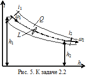 Задача 2.2. В канале произвольной формы течет воздух в количестве G=5кг/с. На входе в канал энтальпия газа, скорость потока и высота входного сечения над произвольной горизонтальной плоскостью соответственно равны i1=293кДж/кг, w1=30 м/с, h1=30м (рис. 5). На выходе из канала те же параметры равны i2=300кДж/кг, w2=15 м/с, h2=10м. Протекая в канале, газ получает извне энергию в форме тепла в количестве L=30 кДж/с. Какую техническую работу совершает поток газа?