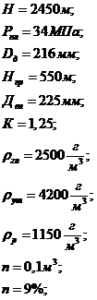 Рассчитать максимальное давление в конце цементирования, допустимое время цементирования и число цементировочных агрегатов