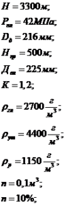 Рассчитать максимальное давление в конце цементирования, допустимое время цементирования и число цементировочных агрегатов