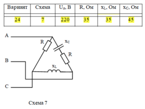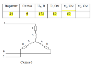 Задача 5. Расчет трехфазных цепей при соединении нагрузки трехпроводной звездой.