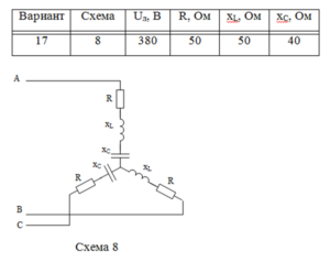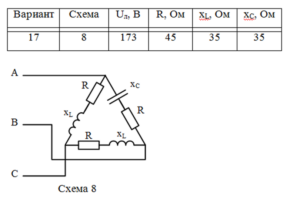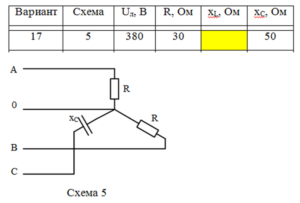 Задача 5. Расчет трехфазных цепей при соединении нагрузки трехпроводной звездой.